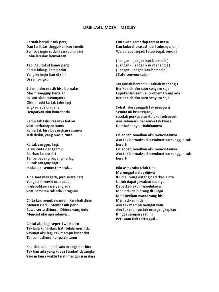 Home / lirik lagu indonesia / tato / satu senyum saja lyrics. Berikanlah aku satu senyum saja. Andai kau tau dalam hatiku hanya lah satu takkan terganti namamu kasih. Milik musica studios, belum lama ini. andra am jangan menangis jangan bersedih. Berikut lirik dan chord lagu cantik dari vierratale. Ku tak ingin malam ini kau bersedih Jangan kau bersedih usah kau menangis Kamu cantik bila tersenyum kamu cantik . Jangan bersedih dengan keadaan ini. G jangan merintih hapuslah kasih. Berikut ini lirik dan chord lagu kereta senja milik masnie towijoyo. Jangan kau bersedih usah kau menangis.